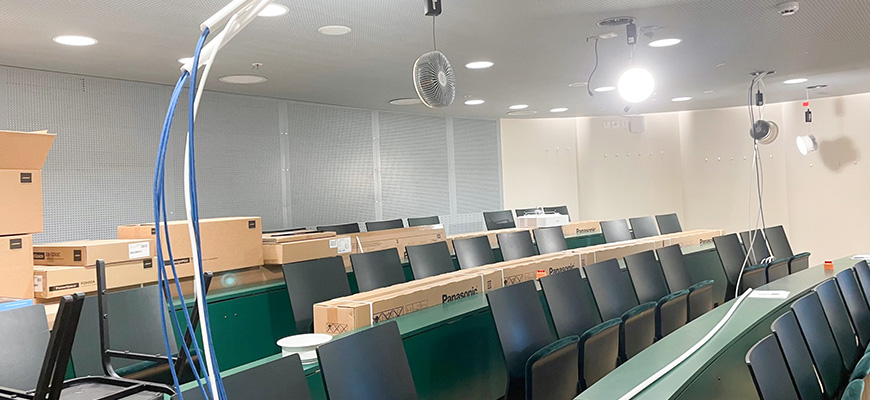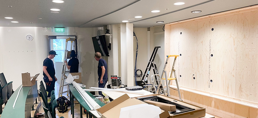 I Gummifabriken bygger vi nu ytterligare en hybridundersvisningssal. Det är salen i mitten på plan 2, Sedasalen eller 201 som den också kallas som nu förvandlas till en modern undervisningssal.