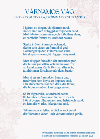 Kvällen avslutades med att diskussionerna sammanfattades med hjälp av en AI som även producerade en dikt, se nedan: