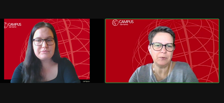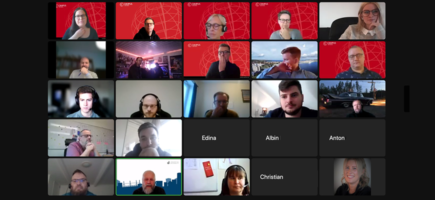 Hanna och Cinna från Campus Värnamo guidade deltagarna genom programpunkterna. Hanna som är studentcoach pushade för vår alumnverksamhet och att vi gärna vill hålla kontakten med våra före detta studenter och att gå med i Facebookgruppen för alumner. Det har varit flera digitala examensfester nu de senaste åren men när det blir som vanligt igen är det dags för en rejäl alumnfest!