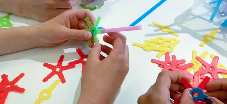 Barnen har fått konstruera fallskydd till ett ägg med hjälp av materialet Strawbees.