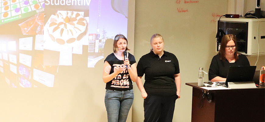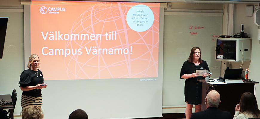 Sofia som är utbildningsansvarig och studentcoach Hanna informerade om Campus Värnamo och hälsade alla välkomna!