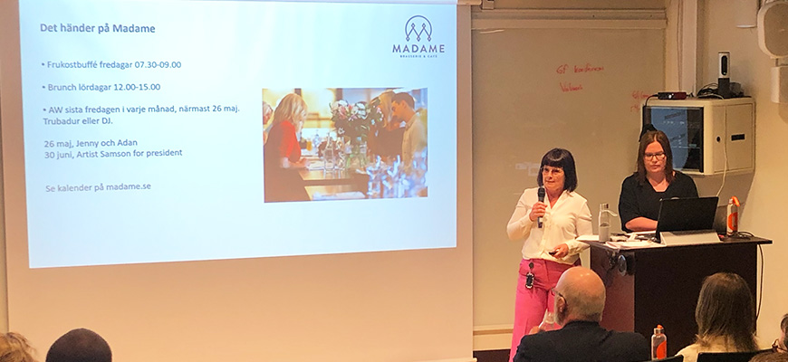 Ulrika från Madame Brasserie & Café informerade om deras verksamhet och förmånliga erbjudanden för studenter.