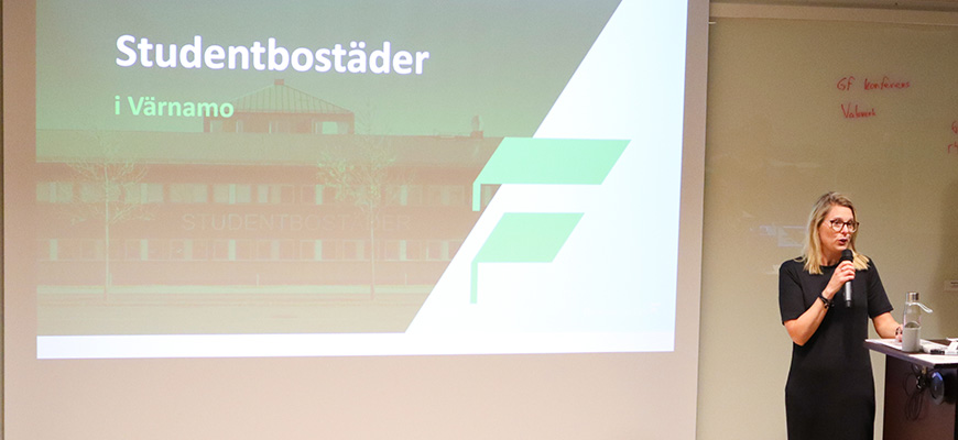 Ungefär tre minuter tar det att gå från en studentlägenhet till en av våra studiesalar. Kristin från Finnvedsbostäder berättade om lägenheterna.