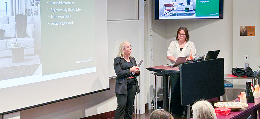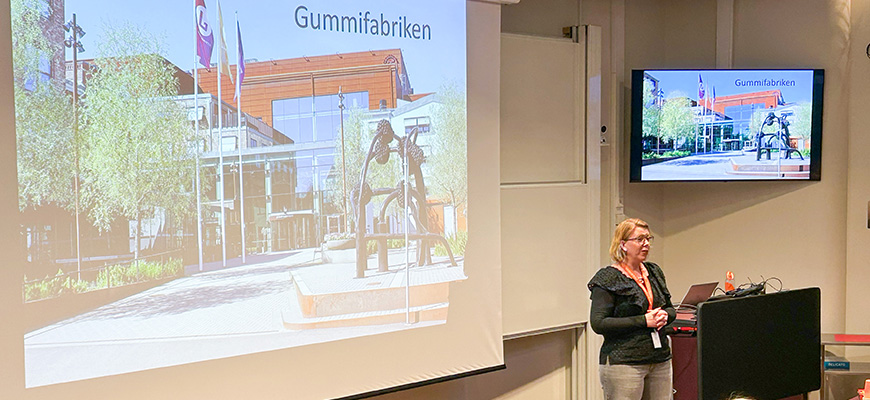 Josefin från Finnvedsbostäder informerade om studentbostäderna som finns på andra sidan gatan från Gummifabriken.