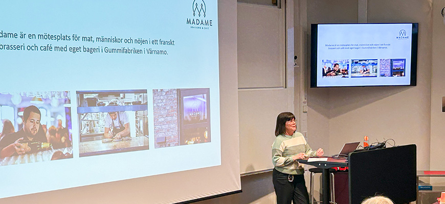 Ulrika från Madame Brasserie & Café informerade om deras verksamhet och flera förmånliga erbjudanden för studenter.