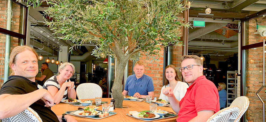 Lunch på Madame. På bilden: Stig Svendsen Savland, Kari Eldby Rygg, Eilert Årseth, Amanda Björnenak och Lars-Uno Åkesson.