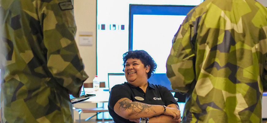 Även representanter från Försvarmakten var nyfikna på teknikutbildningar och kluriga teknikutmaningar.