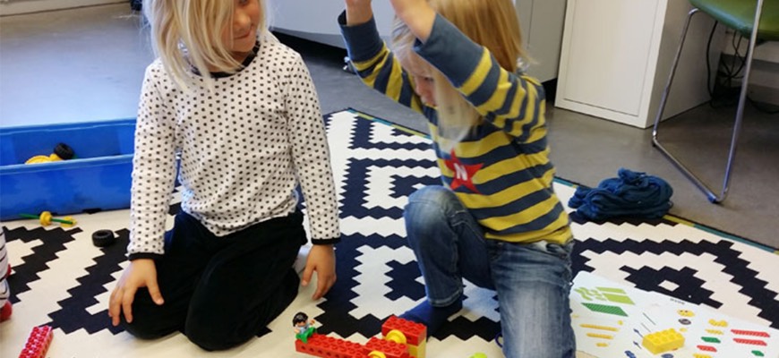 Vidare jämför barnen olika föremåls vikt. Aktiviteten avslutas med att barnen bygger fritt med Lego Duplo.