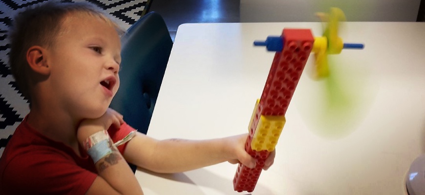 Barnen bygger en vindsnurra i LEGO Duplo och undersöker olika typer av vingar.