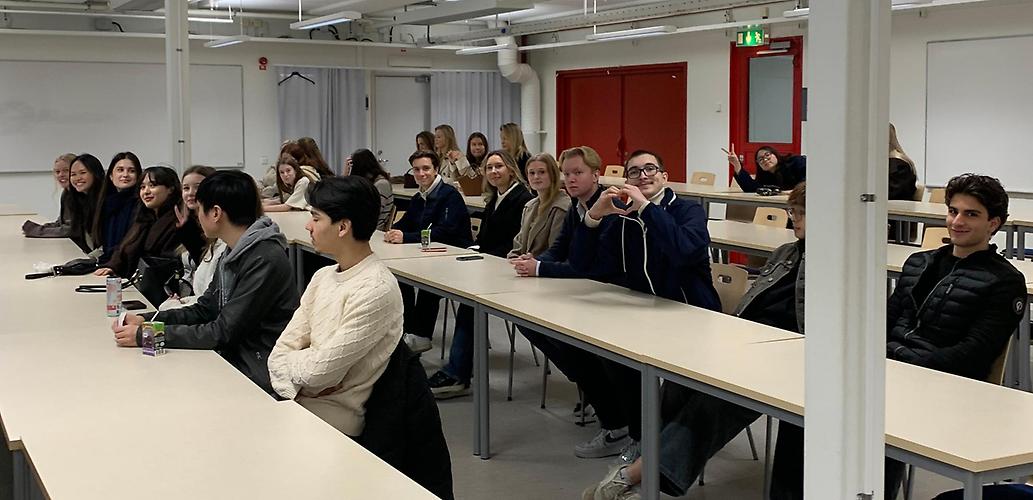 Dagen började med ett besök på Linköpings universitet. Eleverna fick ta del av en föreläsning av Anne L’Huillier, Nobelpristagare i fysik 2023. Därefter följde två ytterligare föreläsningar med forskare från universitetet, som gav en bredare bild av pågående forskning om Alzheimers sjukdom och fåglars beteende. Besöket avslutades med ett samtal med tre studenter om hur det är att studera och leva som student i Linköping.