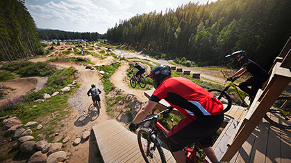 Utmana dig själv på pumptracks och mountainbikeleder i olika svårighetsgrader eller ta en tur på en av alla fina cykelleder som tar dig runt våra sjöar och landsbygd.